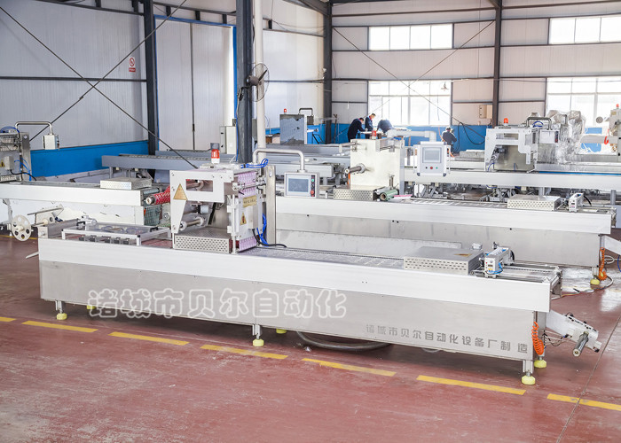一、產(chǎn)品簡介 拉伸式全自動真空包裝機(拉伸膜包裝機圖片如圖)是我廠2000年自主開發(fā)的新產(chǎn)品,經(jīng)過十六年的研發(fā)與完善,貝爾拉伸膜包裝機以其成熟技術(shù),高端原裝進口主機配件,高效使用性能,。 貝爾全自動拉伸膜包裝機能夠自動制袋,自動打印生產(chǎn)日期及批號,自動真空包裝,真正實現(xiàn)自動化包裝,包裝袋應用規(guī)格廣泛,長度范圍:60-460mm,寬度范圍:60-600mm,包裝效率每小時1000-15000袋,通過更換不同的上料系統(tǒng),可以對液體,膏體,粉末,塊狀等不同的物料進行自動定量包裝,實現(xiàn)一機多用,高效智能,產(chǎn)品主要規(guī)格有LZ320型,LZ420型,LZ520型,同時可根據(jù)客戶產(chǎn)品規(guī)格量身定制設備,以達到提升產(chǎn)能,避免物料浪費,節(jié)約生產(chǎn)成本的目的。 二、應用范圍 適用于熟食、果蔬、海產(chǎn)品、冷凍塊肉、豆制品、中藥材、五金、電子元件、械,日化用品等物品的真空包裝或充氣全自動拉伸熱封包裝。該系列包裝機除隨機配備的模具外,可以根據(jù)用戶不同產(chǎn)品需要設計訂做模具,亦或在同一臺機器上進行拉伸膜包裝和托盤包裝。 三、性能特點及原理